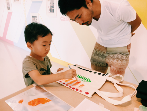 At this drop-in session, we provided assorted stencils in different booths. Participants can customise their tote bags in any way at all.