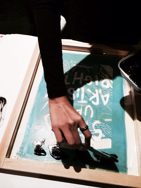 STAND UP FOR ARTISTS' RIGHTS! , held on a Labour Day weekend was an artistic response to Labour Day where invited artists were tasked to showcase their craft in passionate gusto.We screen printed posters from scratch, with papers waiting to be filled in to create unique prints. Also present at the event were live pottery and a drummer.